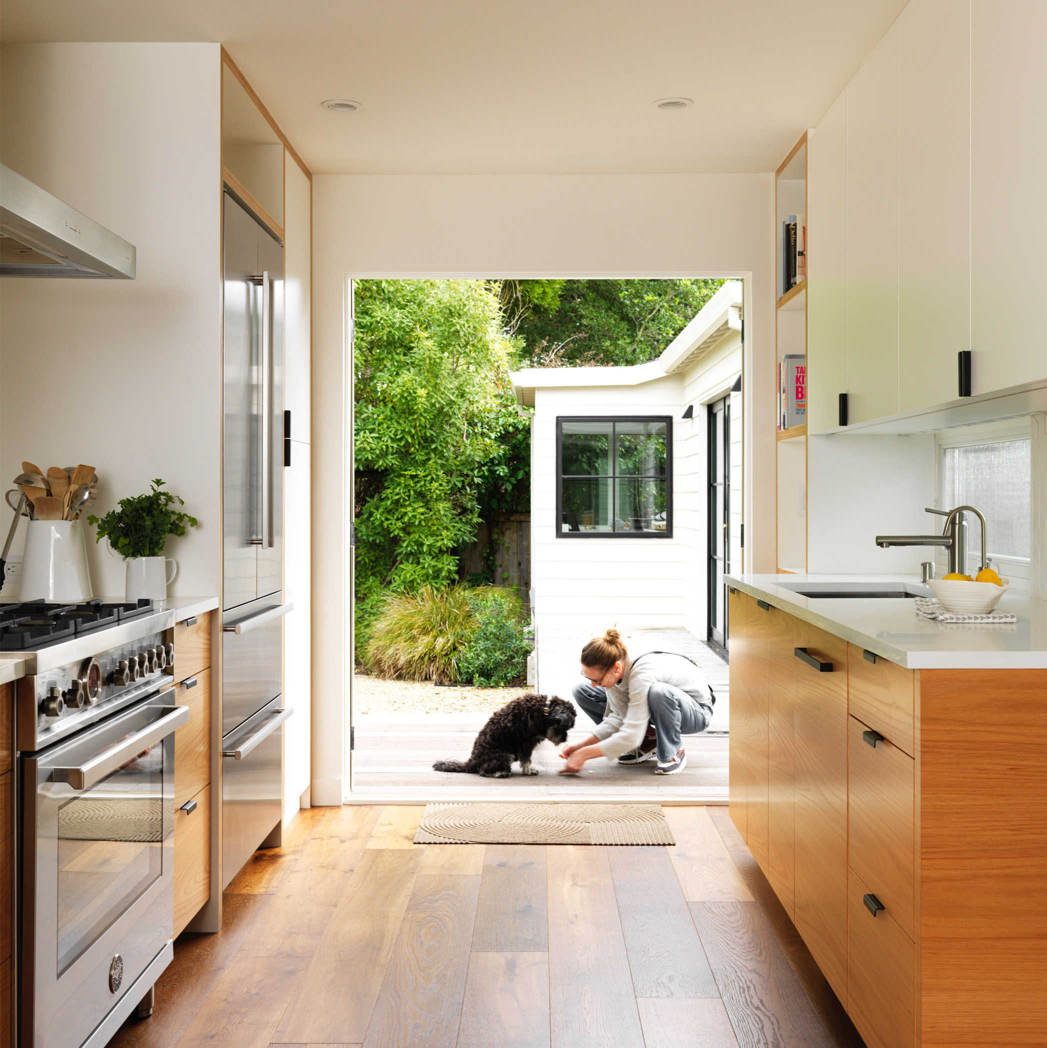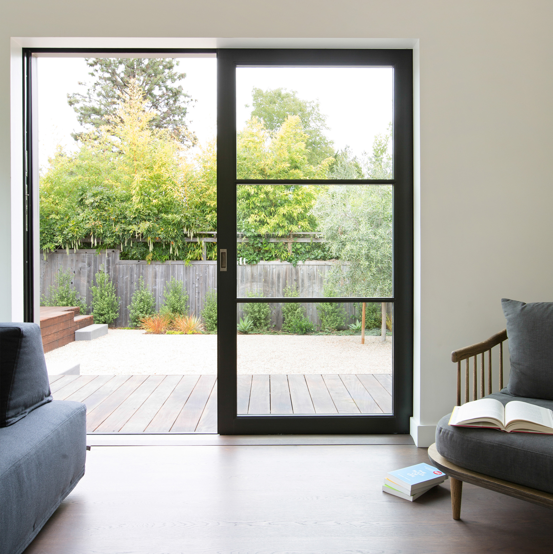 We revamped the main house and added a new accessory building allowing a family of four to live well in a relatively modest footprint. The new building holds an office and project space while the home has an open kitchen, living and dining room arrangement.