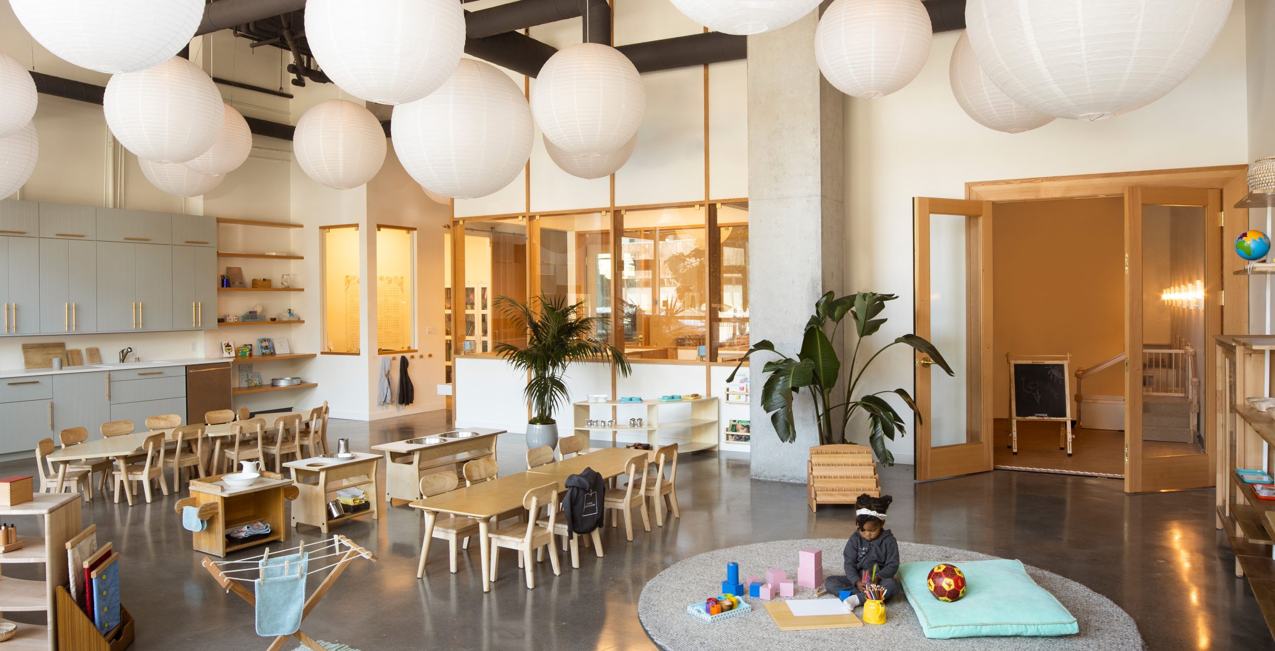 Studio Montessori is an international school in the San Francisco design district welcoming infants, toddlers, and preschoolers. The founder, Zoe, believes that beauty needs to be accessible at the earliest age. The space creates an elegant, serene and creative atmosphere where children can experiment and learn.