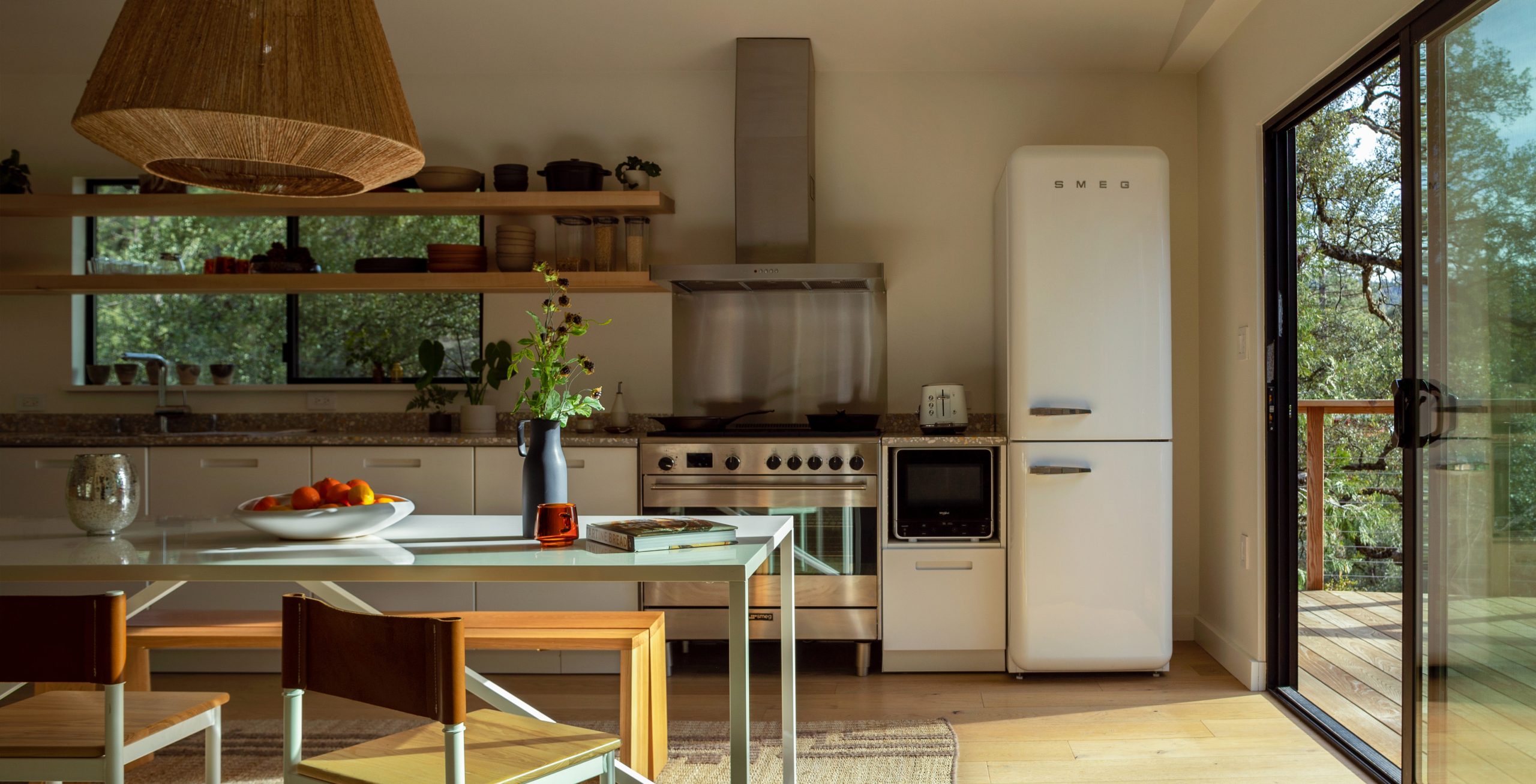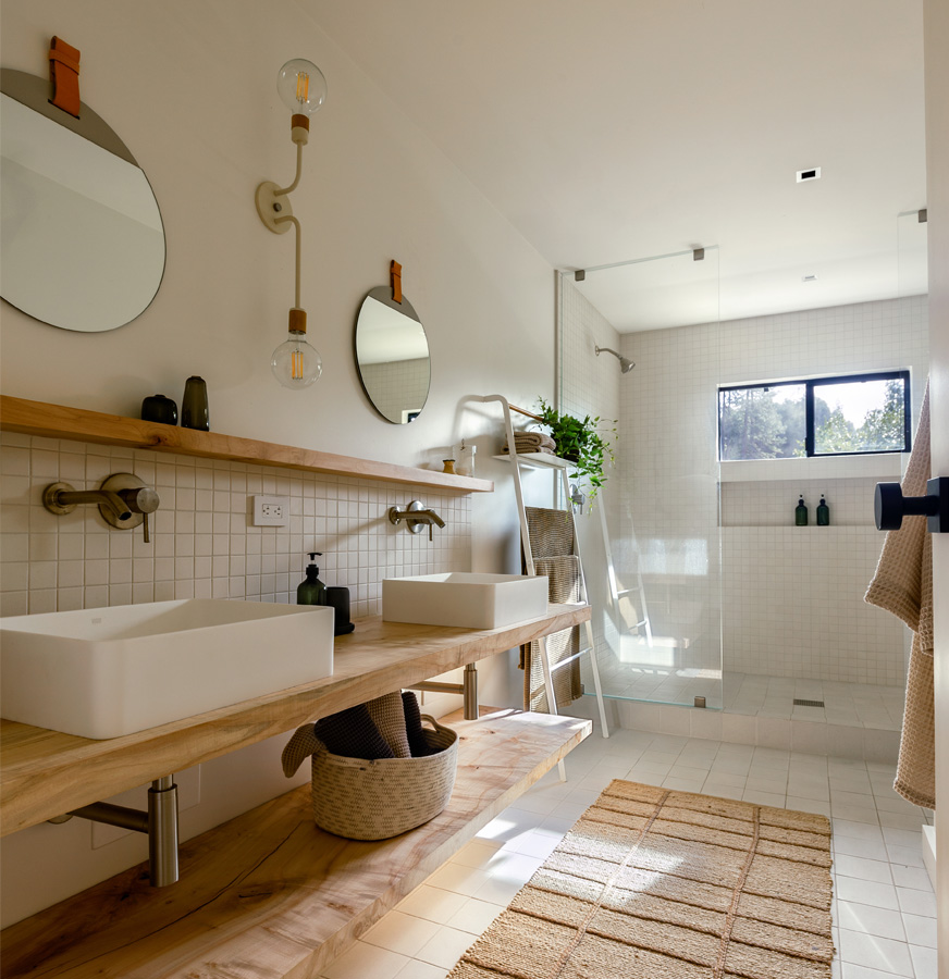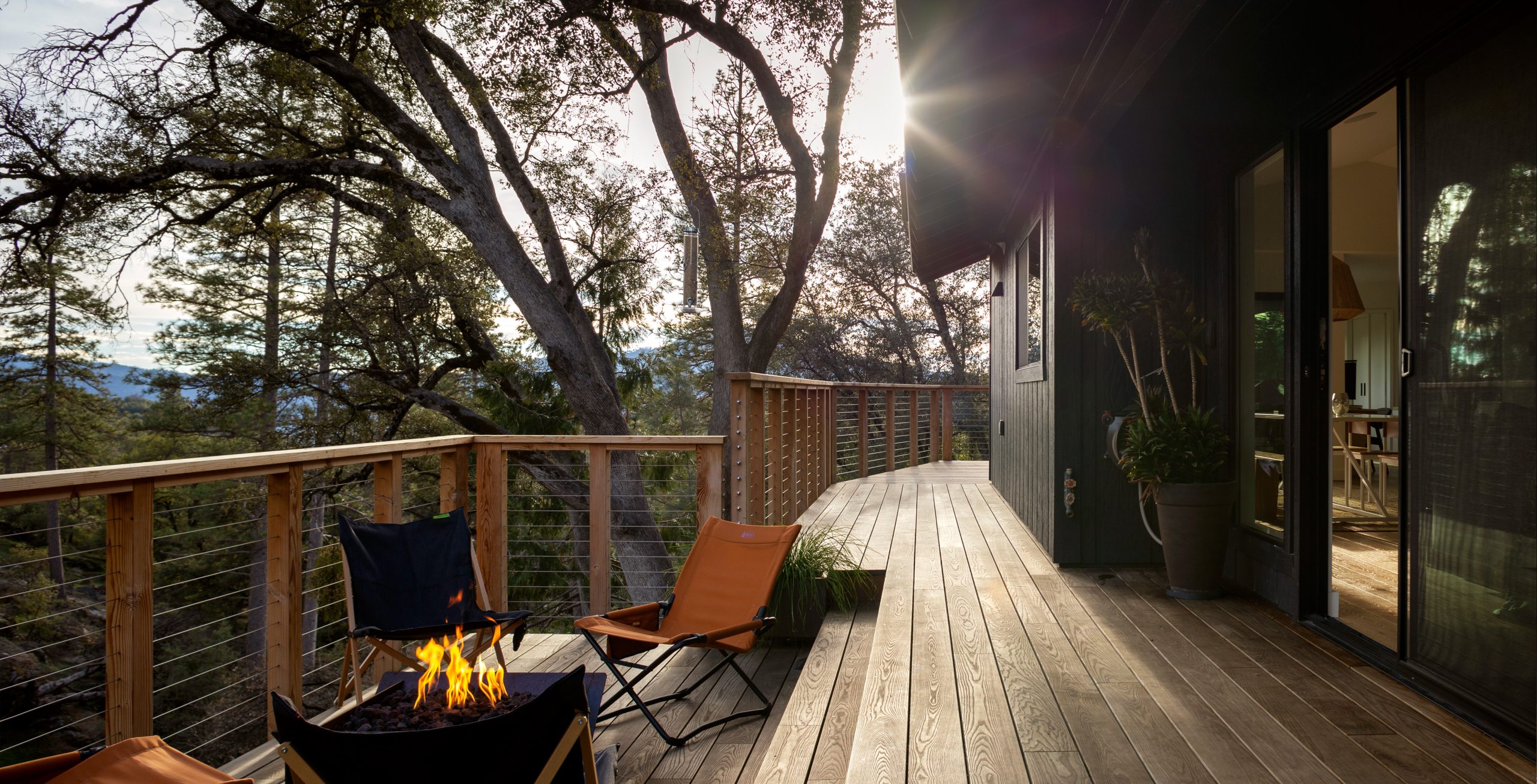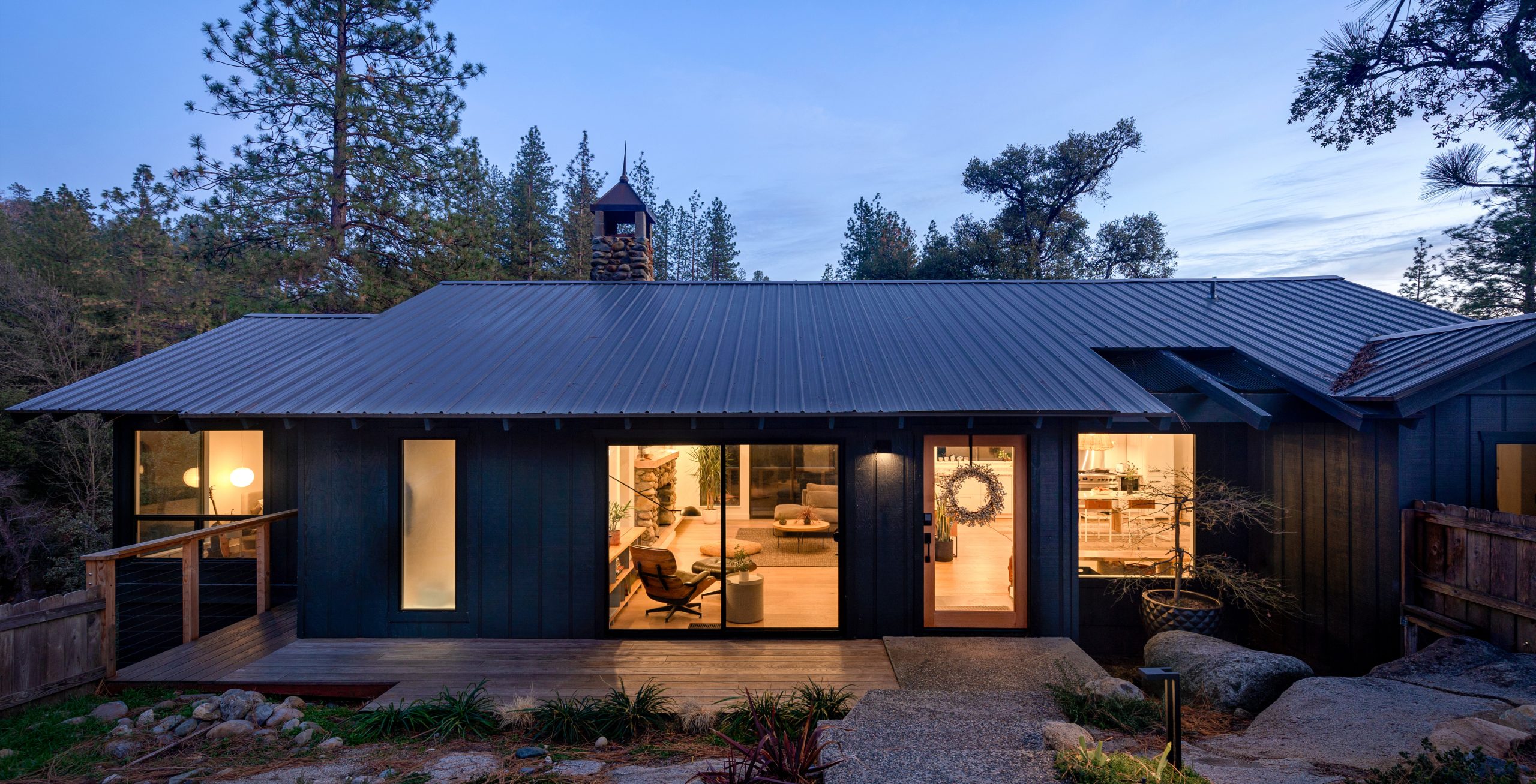 Perched at the edge of a waterfall in Yosemite this 1950’s rancher didn’t quite feel part of nature. Strategic new windows, a new deck, vaulted ceiling, and new floor plan and finishes changed that. Now a view of trees, access to the outdoors, and clear site lines are part of every space.