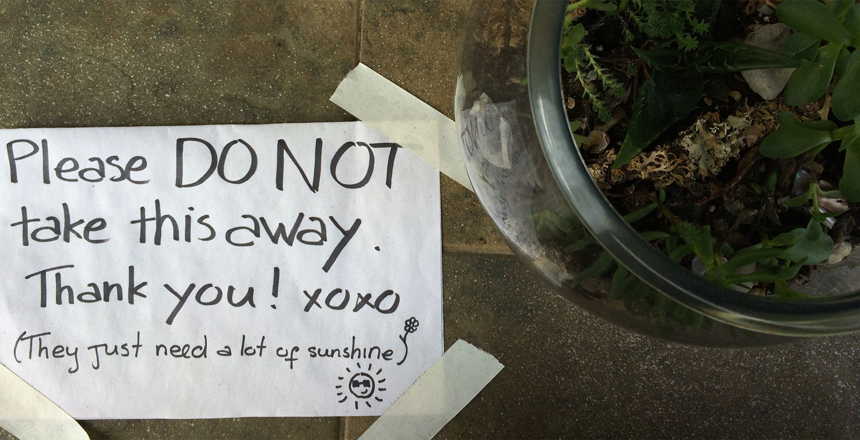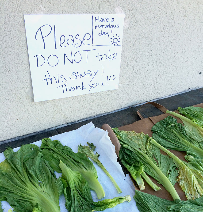 Another resident had a little pot of succulents left out to get some sun with a note. Days later another note appeared next to some greens drying. No one ever disturbed either of them. We decided this was equal parts social experiment and horticulture.