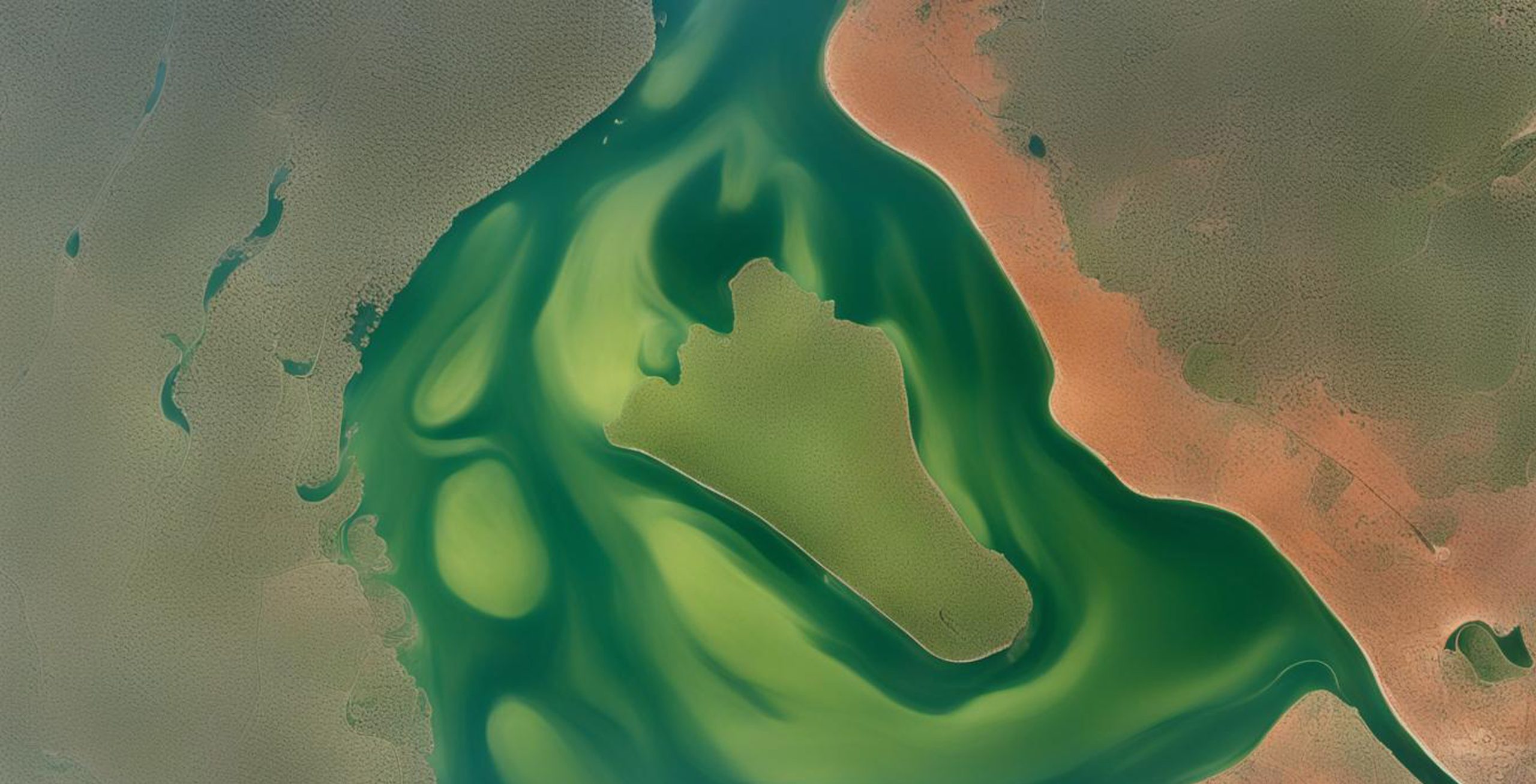 [Photo 1: This is not a Georgia O’Keefe but the Clearlake algae bloom from space. Nature, even in degradation, can inspire, but we need not settle for degradation.]