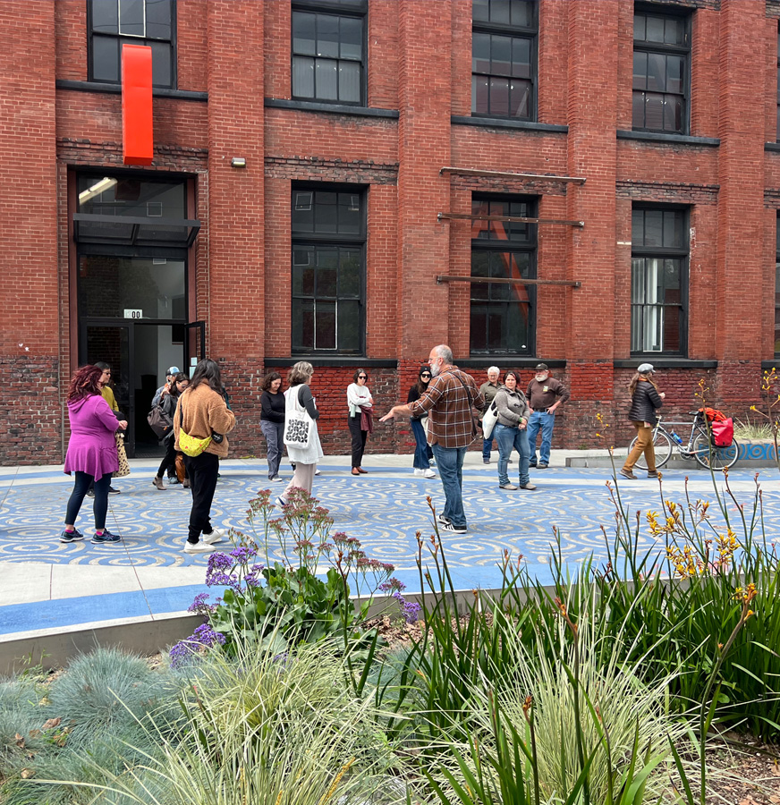 Walking tour of Treat Street Past Present and Future in collaboration with Livable City, Elizabeth Kreely Historian for Treat St, Patricia Algara of Base Landscape Architecture and Kieran Farr of Sierra Club. The Mission District was once a wetland and the walking tour explored what happened to all that water and how we can bring some habitat back. The small triangle of Treat St adjacent to Dandelion Chocolate is about to have a sewer replacement. Instead of pavement let’s make a park.