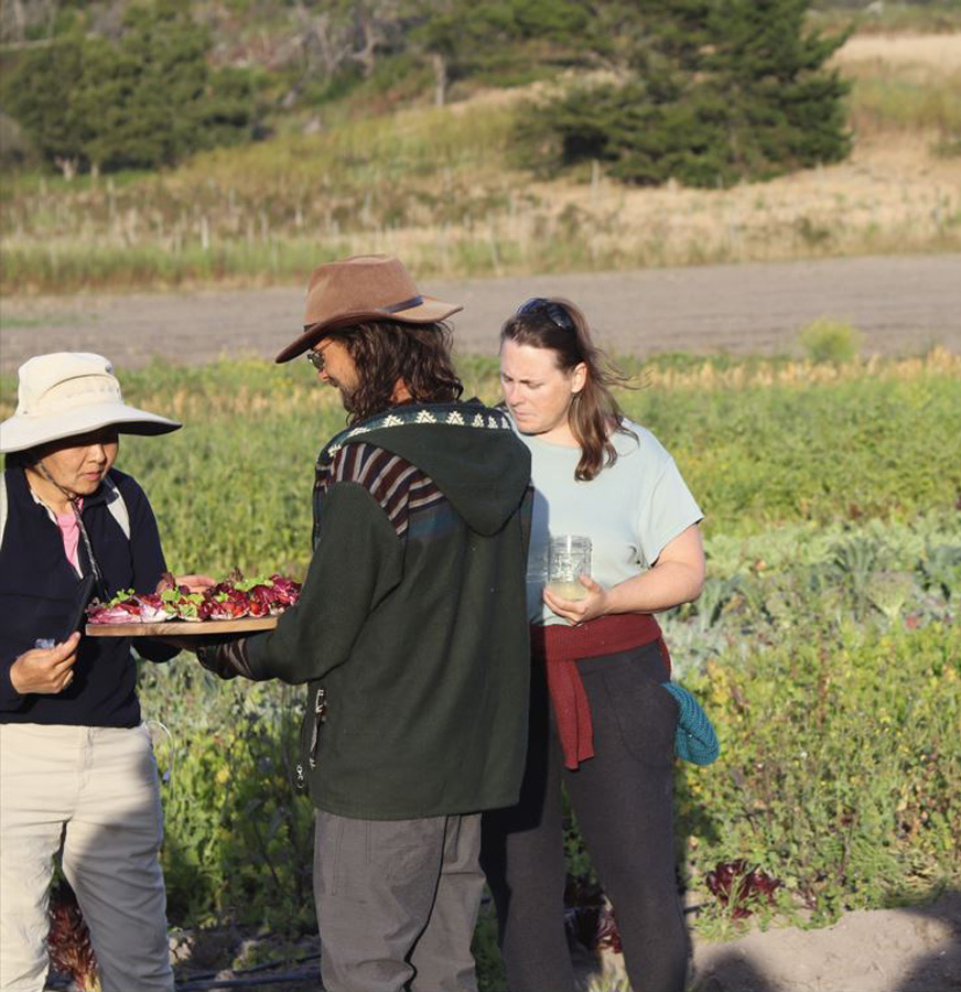 Mark Curtiss brings his calling to the Kitchen at Red Dot Ranch holding classes this fall/winter where we will tend the wild, forage, tend the soil, harvest, cook and eat together. Last weekend Mark was the guest chef at the Santa Cruz Permaculture farm where guests took part in making the first and last course together, so cooking was part of eating.