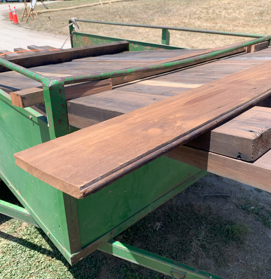 Old Growth Redwood, de-constructed in Pescadero by the Reusable Lumber Company, de-nailed by the Urban Machine, to be reconstructed as siding in Nicasio with Larkspur Builders Inc.